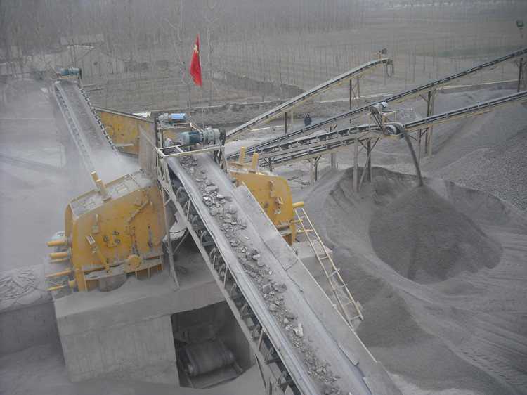 石料由机器上部直接落入高速旋转的转盘;在高速离心力的作用下,与另一部分以伞型方式分流在转盘四周的飞石产生高速碰撞与高密度的粉碎,石料在互相打击后,又会在转盘和机壳之间形成涡流运动而造成多次的互相打击、粉碎。